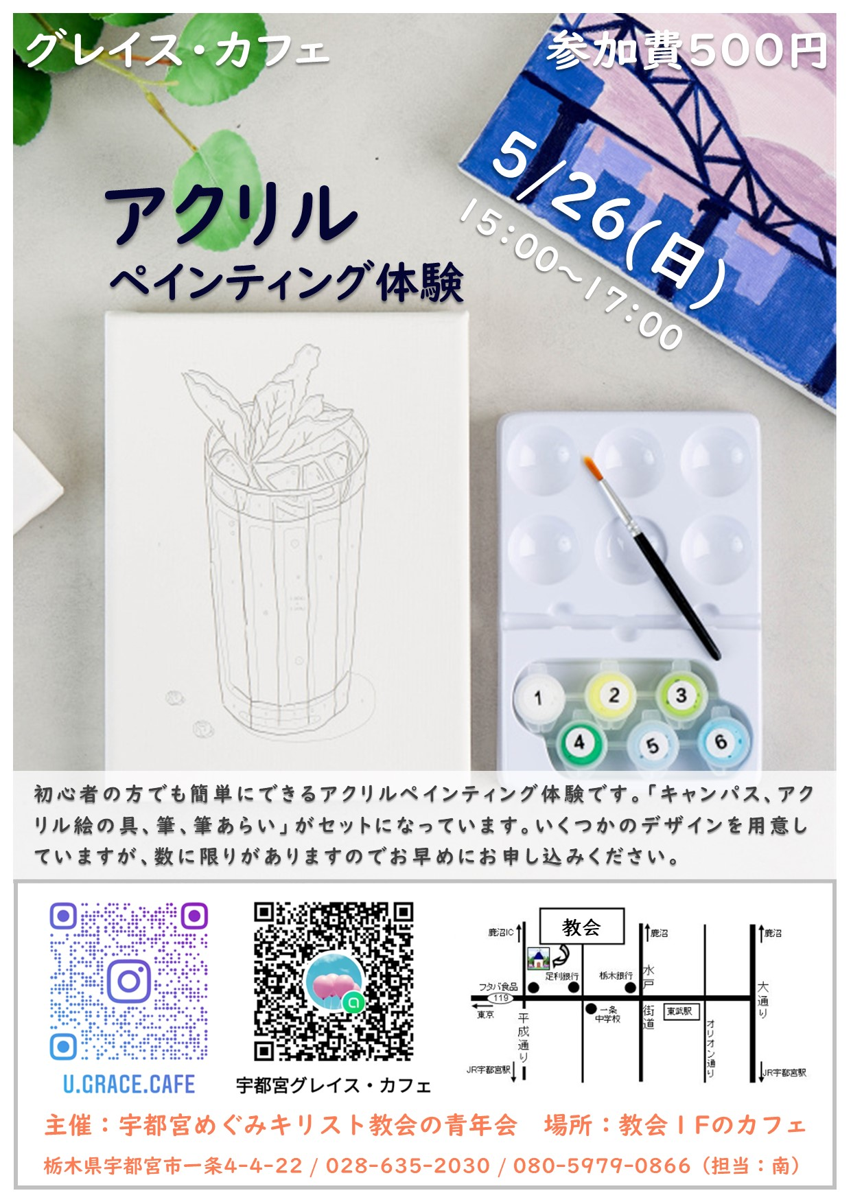 お知らせ 5月のグレイスカフェの案内 宇都宮めぐみキリスト教会 2024. 5. 17. 10:30 공유하기 게시글 관리 宇都宮めぐみキリスト教会 'お知らせ' Related Articles 6月のこども会の案内 5月のこども会の案内 ゴスペルコンサートの案内 こども英会話
