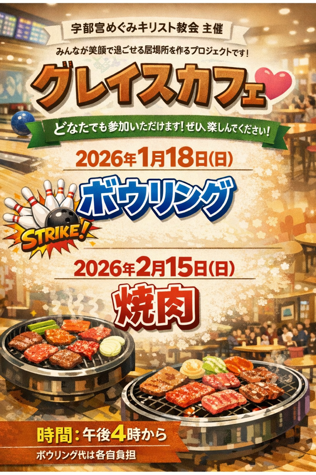 카테고리 없음 2026年2月のグレイスカフェ 임봉혁/오수진선교사 2026. 2. 2. 15:37 皆さんが笑顔で過ごせる居場所を作るプロジェクトです!また、世界のベストセラー聖書も触れるチャンス〜2026年2月は焼肉です。 会費 1000円です。宜しくお願いします。080-3005-8102 공유하기 게시글 관리 宇都宮めぐみキリスト教会